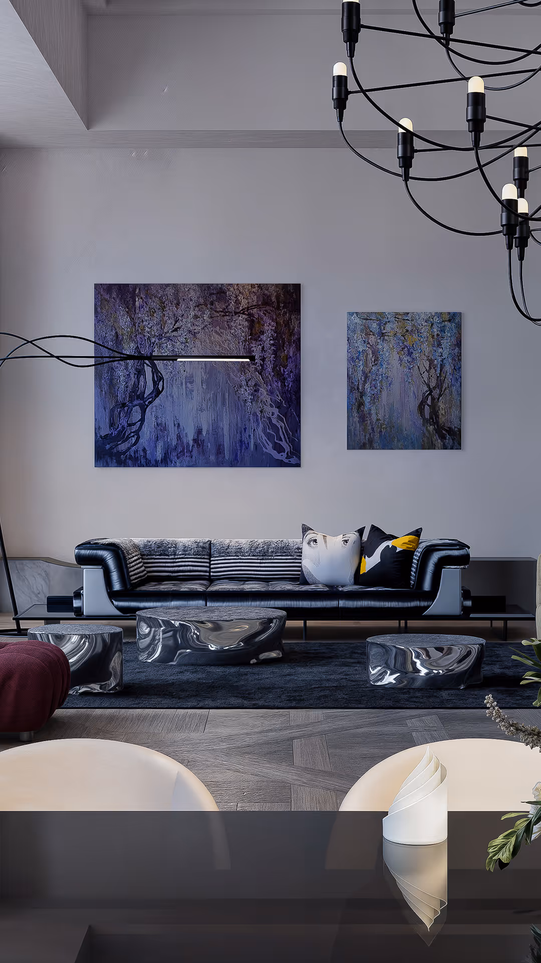The choice of Roche Bobois lighting, paired with refined contemporary furnishings, enhances the gallery-like atmosphere, while still maintaining the comfort expected from High-End Furniture. For the homeowner, every evening becomes an immersive cultural experience—whether entertaining, reflecting, or simply living within beauty.