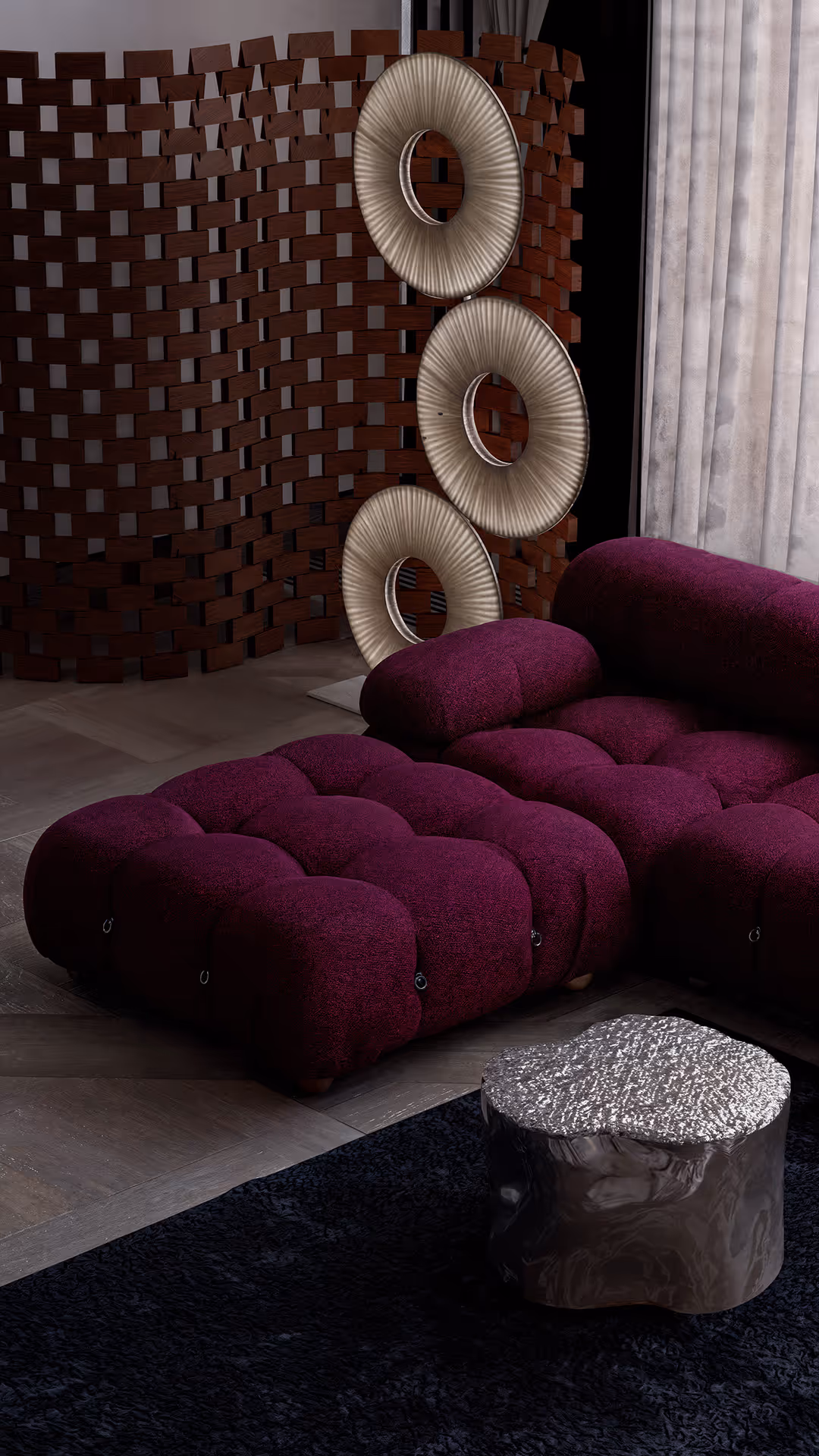 Designing a space that balanced functionality and artfulness was the greatest challenge. The team resolved this by integrating modular seating with sculptural accents, ensuring both comfort for gatherings and visual drama befitting the client’s art-driven lifestyle.