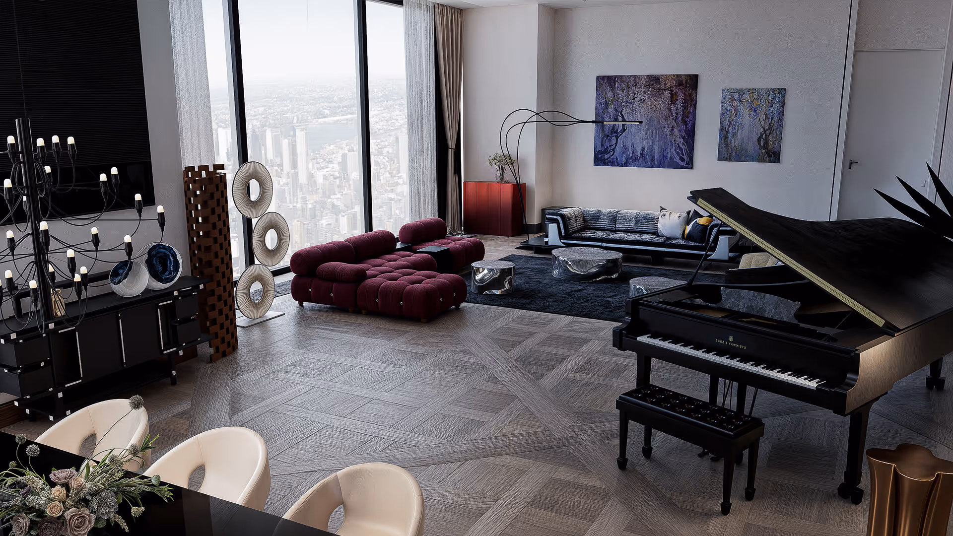 This living room was crafted for a cultivated lifestyle where art, culture, and conversation converge. Hosting collectors, critics, and fellow visionaries, the owner can stage intimate salons in a space where every surface speaks to sophistication.