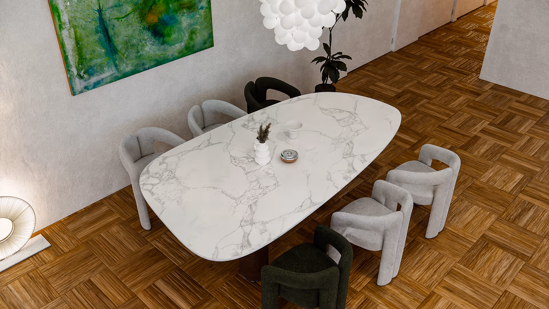 “The marble dining table is my sanctuary—it feels like a sculpture I get to live with every day. It commands attention yet feels serene and grounded.”