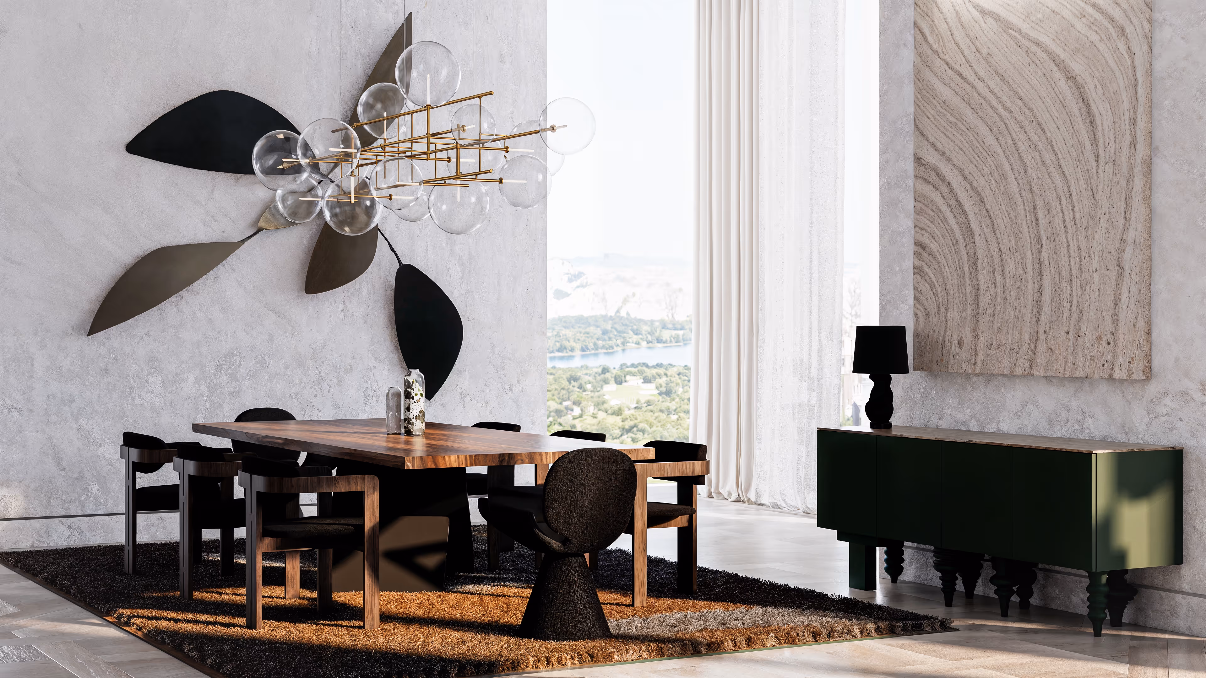 “The chandelier is my favorite piece—it feels like dining under a constellation, adding an artistic glow that makes every gathering extraordinary.”