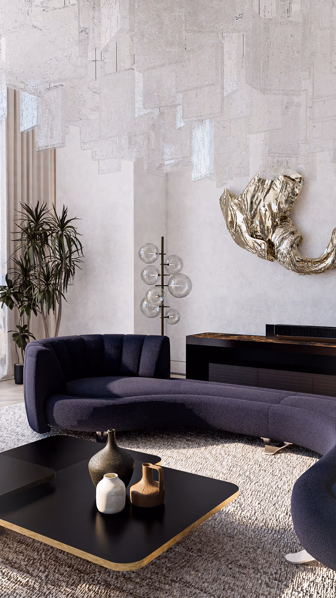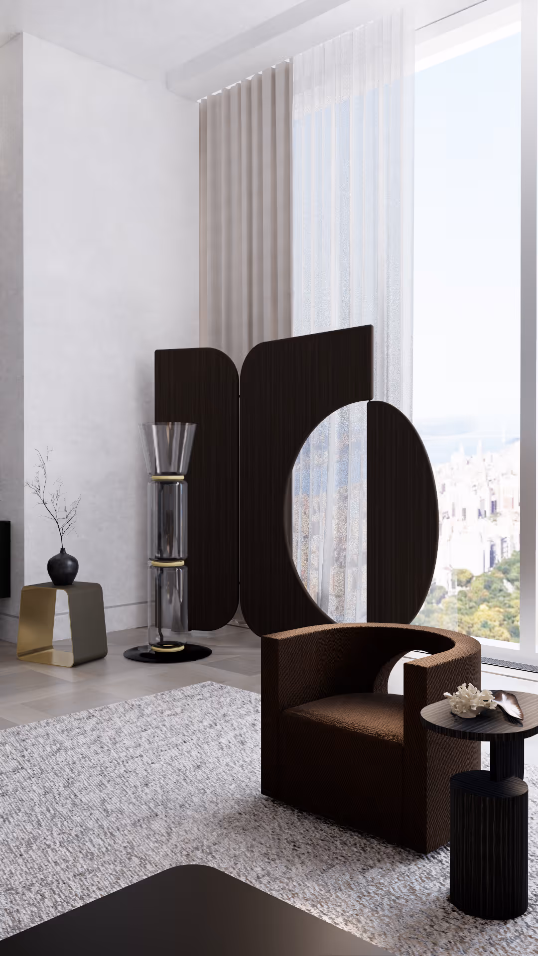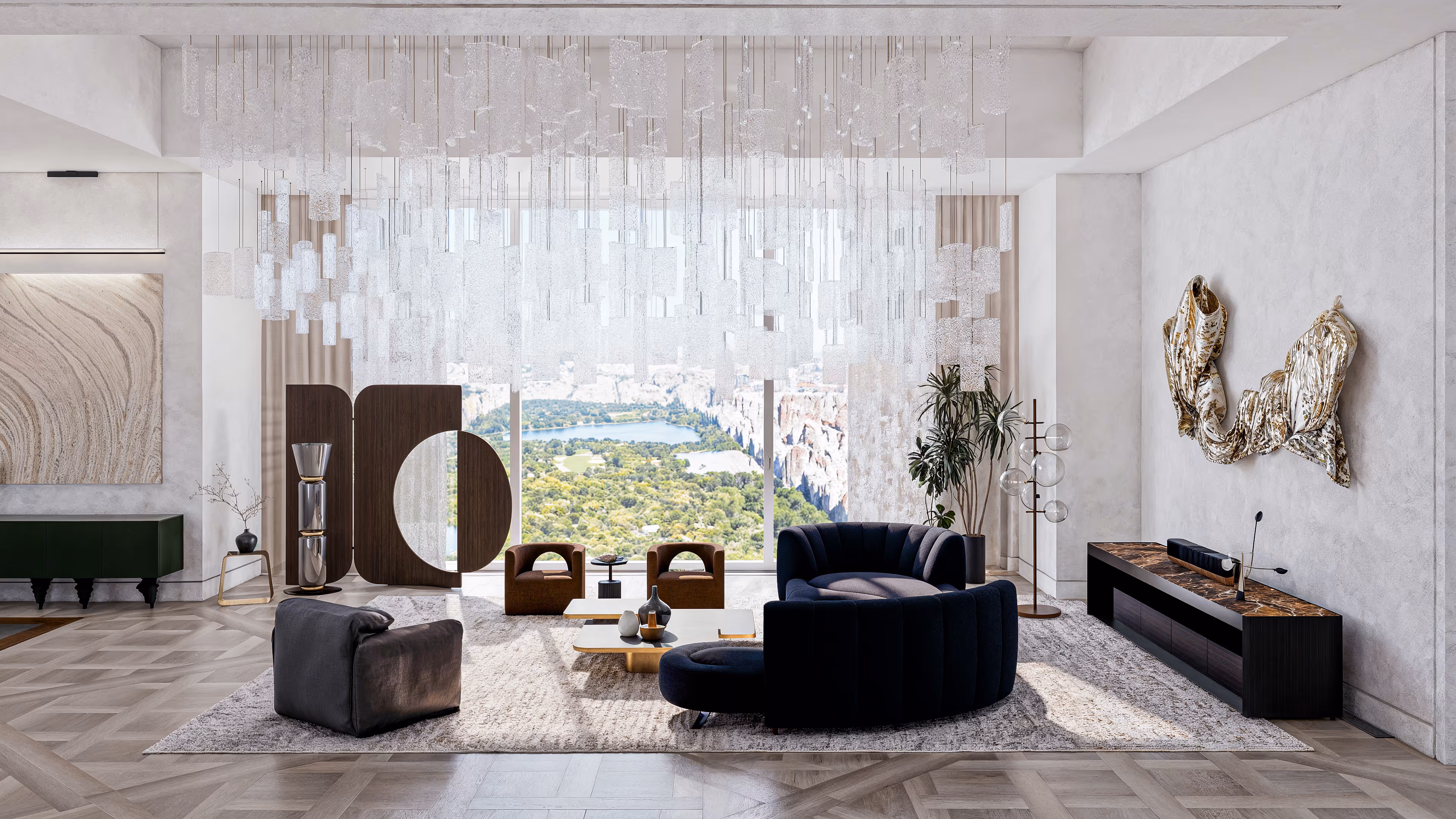 In the heart of Manhattan’s Billionaire’s Row, a prominent art collector has redefined the meaning of modern living within 111 West 57th Street. This 7,130 square-foot Luxury Residence captures both the intimacy of a private gallery and the grandeur of a cosmopolitan lifestyle. With its Luxury Interior Design, sculptural High-End Furniture, and breathtaking Central Park views, the living room serves as a stage for timeless elegance and creative expression.