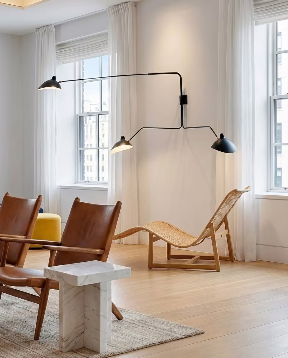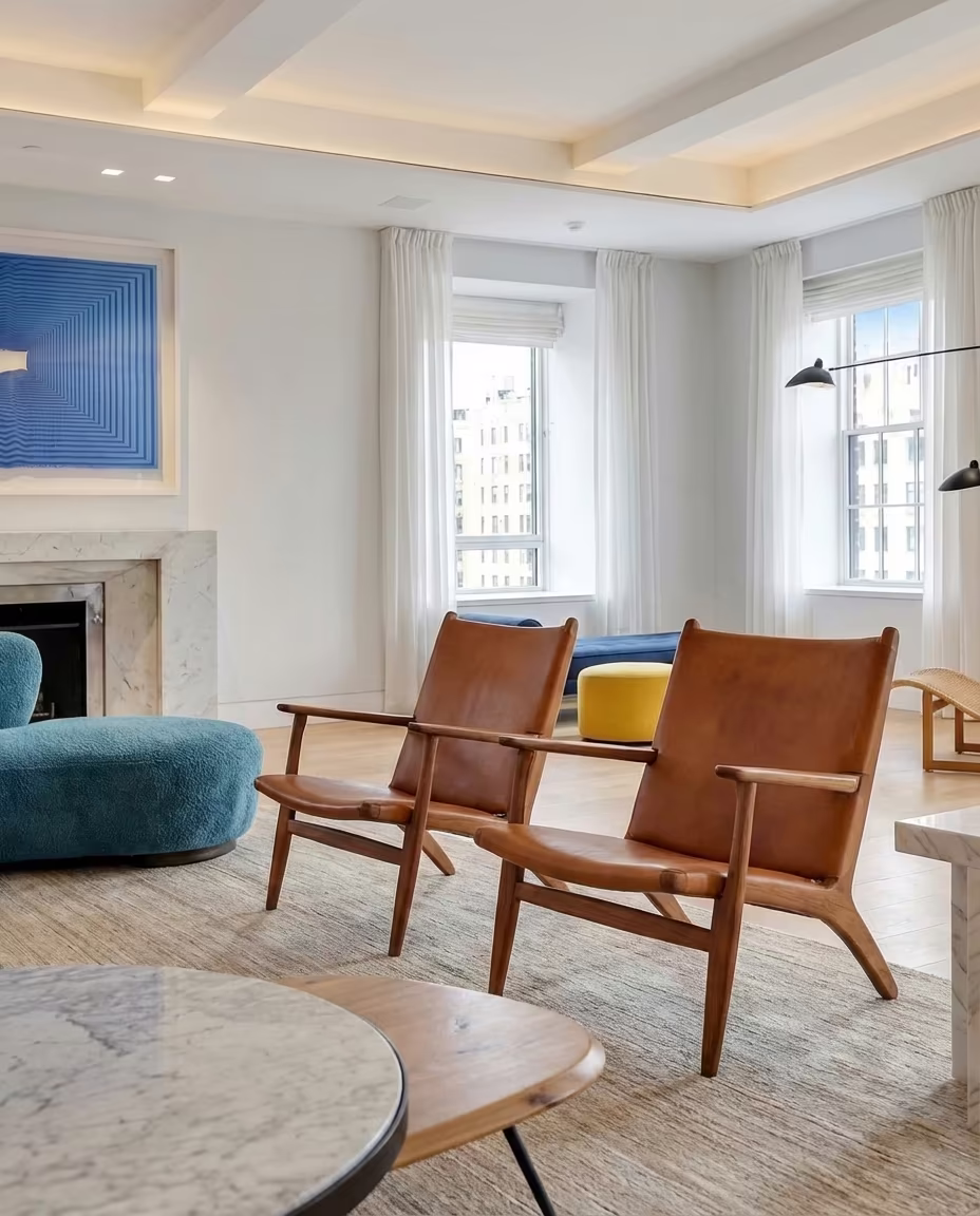With a $200,000 allocation, the investment focused on collectible furniture and designer lighting, ensuring both long-term value and an immediate sense of sophistication befitting a luxury New York residence.