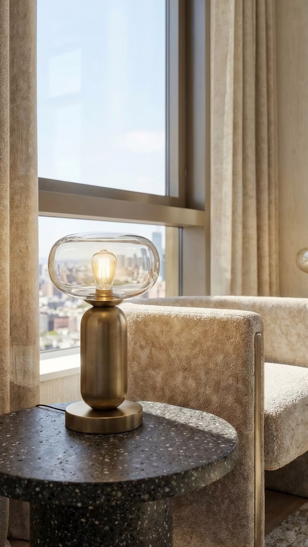 Lighting plays a pivotal role in defining the atmosphere of the space. Glass materials capture and reflect natural light during the day, while softly diffusing artificial illumination at night. A combination of indirect lighting and table lamps was layered to allow for a range of moods, adaptable to different times of day and living scenarios.
