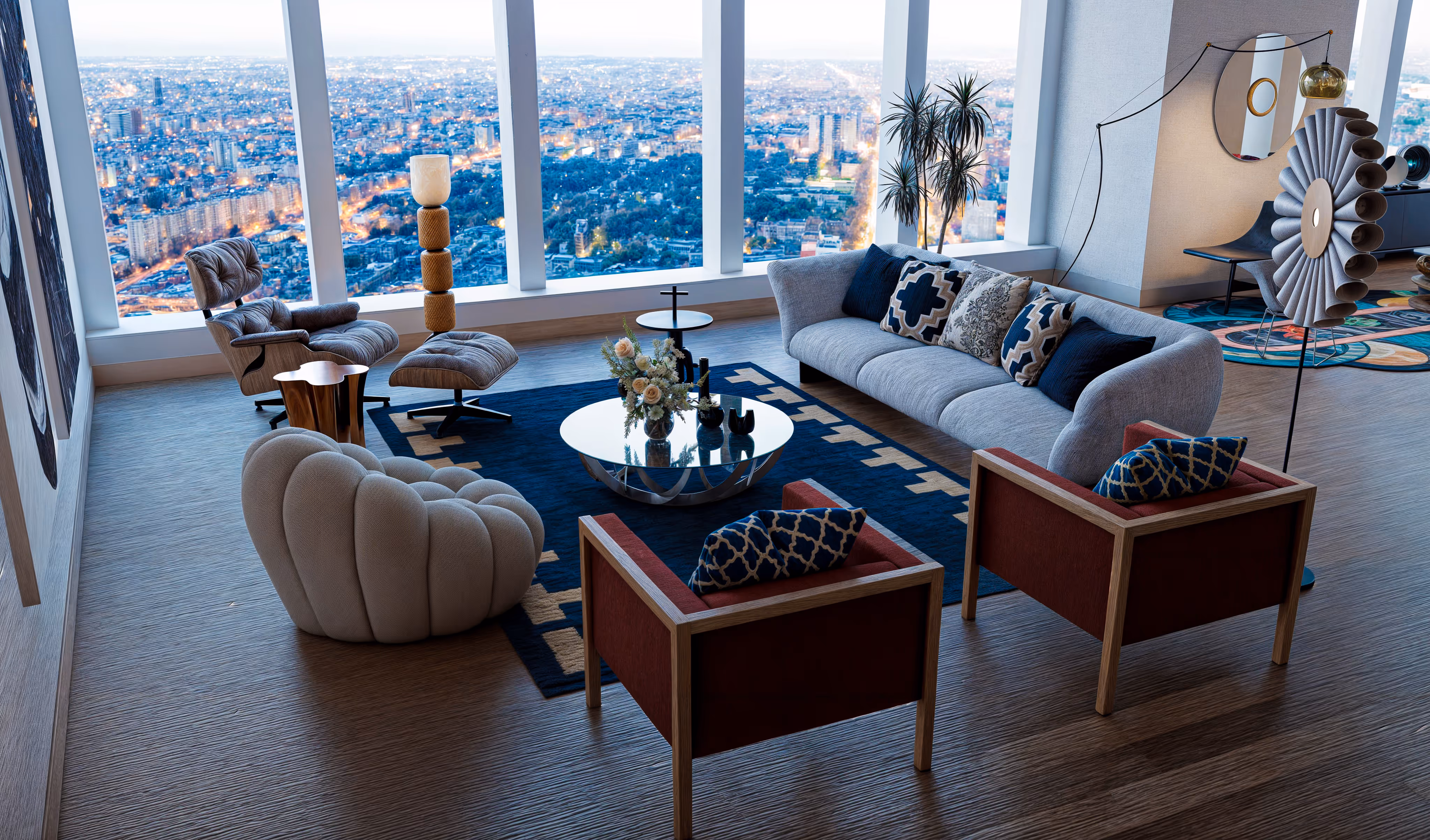 The Lounge Chair by Vitra becomes a space for reflective reading, while the Bubble Armchair adds sculptural whimsy during gatherings. The integration of Louis Vuitton-inspired accessories and textiles ensures that the atmosphere resonates with New York Luxury Residence Interior Design standards—sophisticated, global, and undeniably stylish.