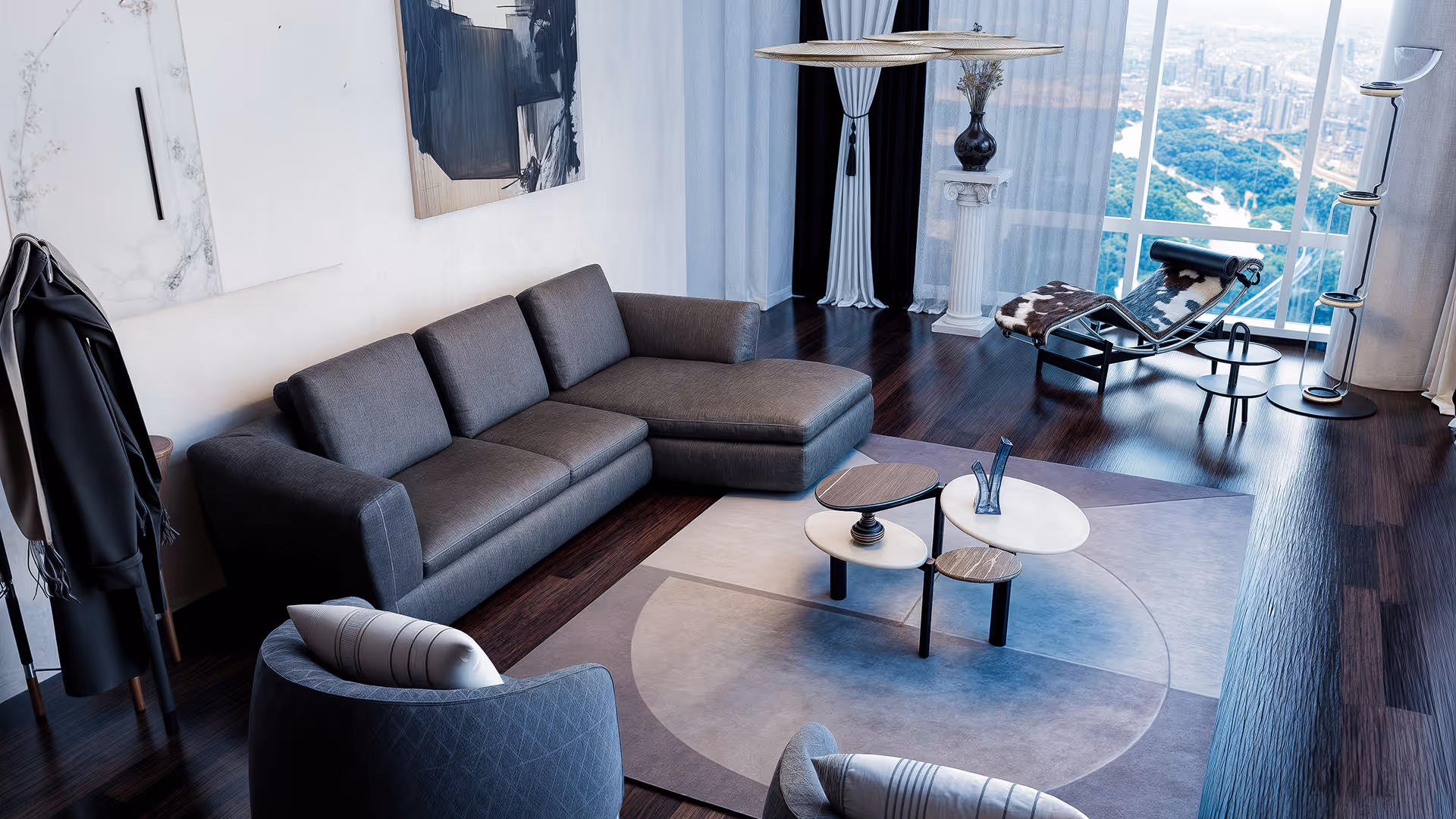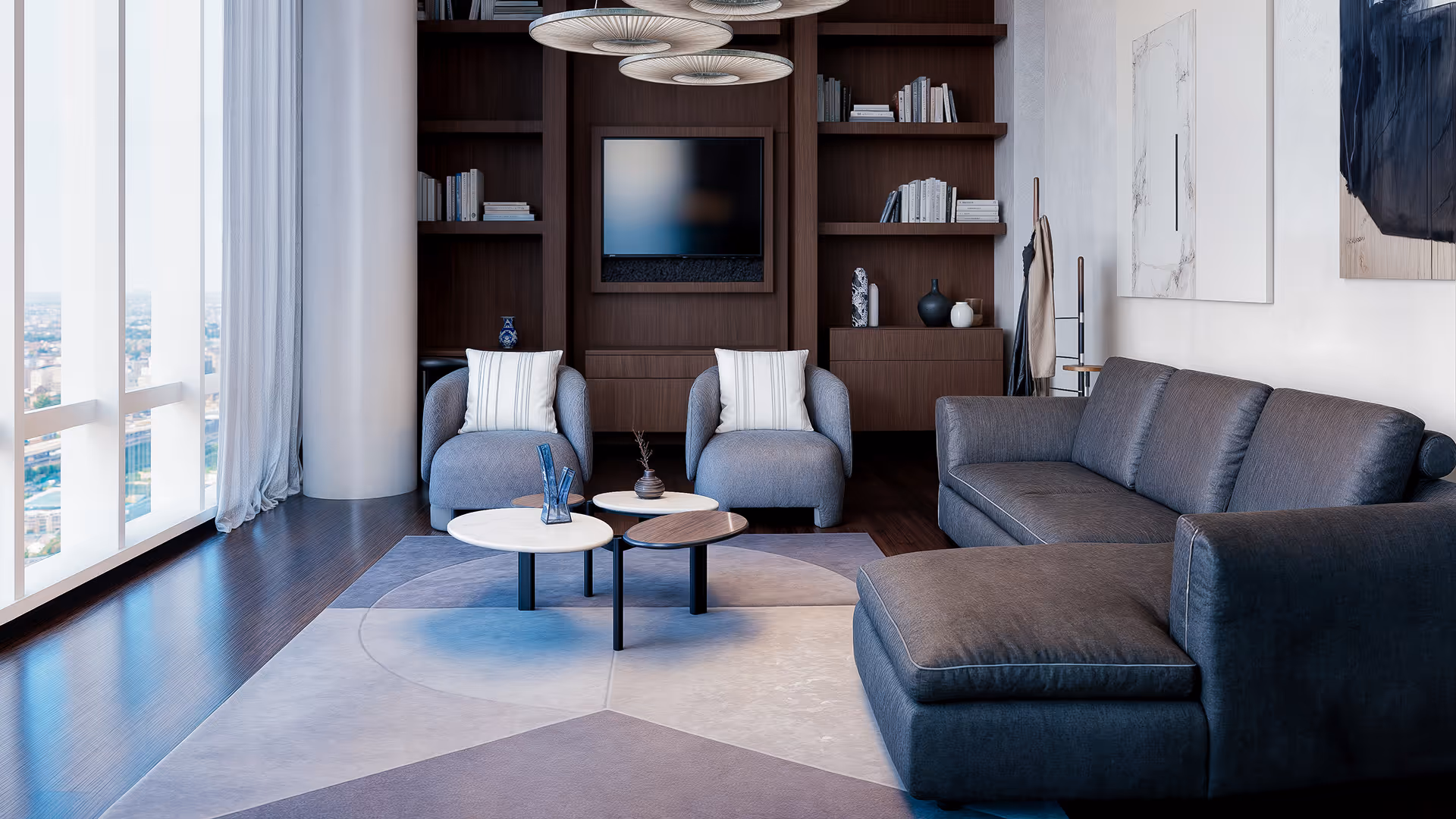 Imagine the Manhattan skyline as the backdrop to your evenings, where every element of your home has been curated with precision and intention. At One57, a 1,021 SF Modern Minimalist Luxury Residence in New York, the homeowner—a global investment strategist with a taste for timeless elegance—has shaped a living room that celebrates balance, warmth, and refinement.