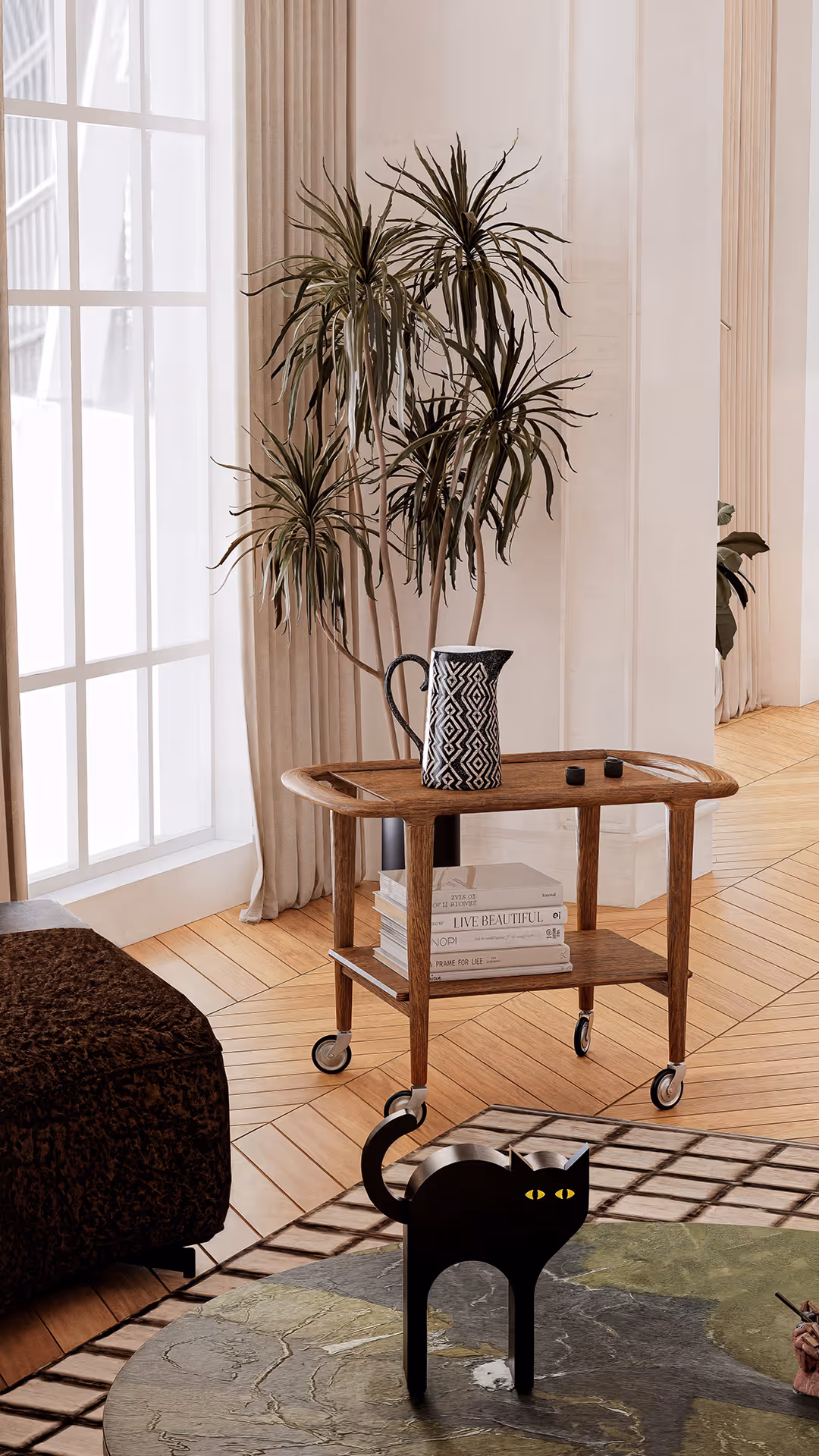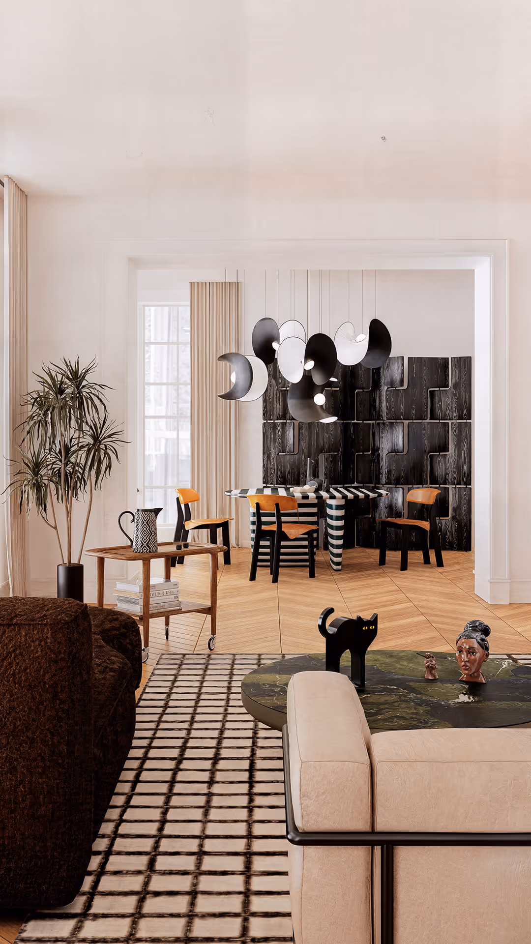 The biggest challenge was avoiding a space that felt overly austere or museum-like when working with a neutral palette. The solution was to introduce warm textures and cultural accents, balancing minimalism with lived-in luxury.